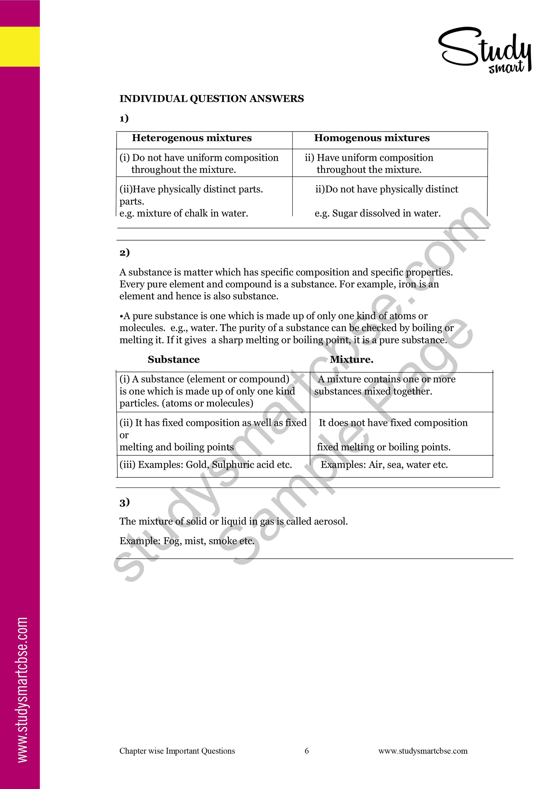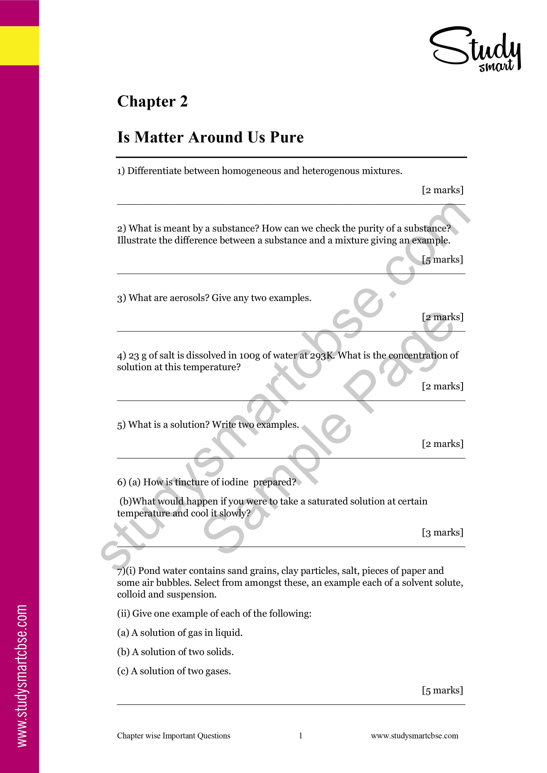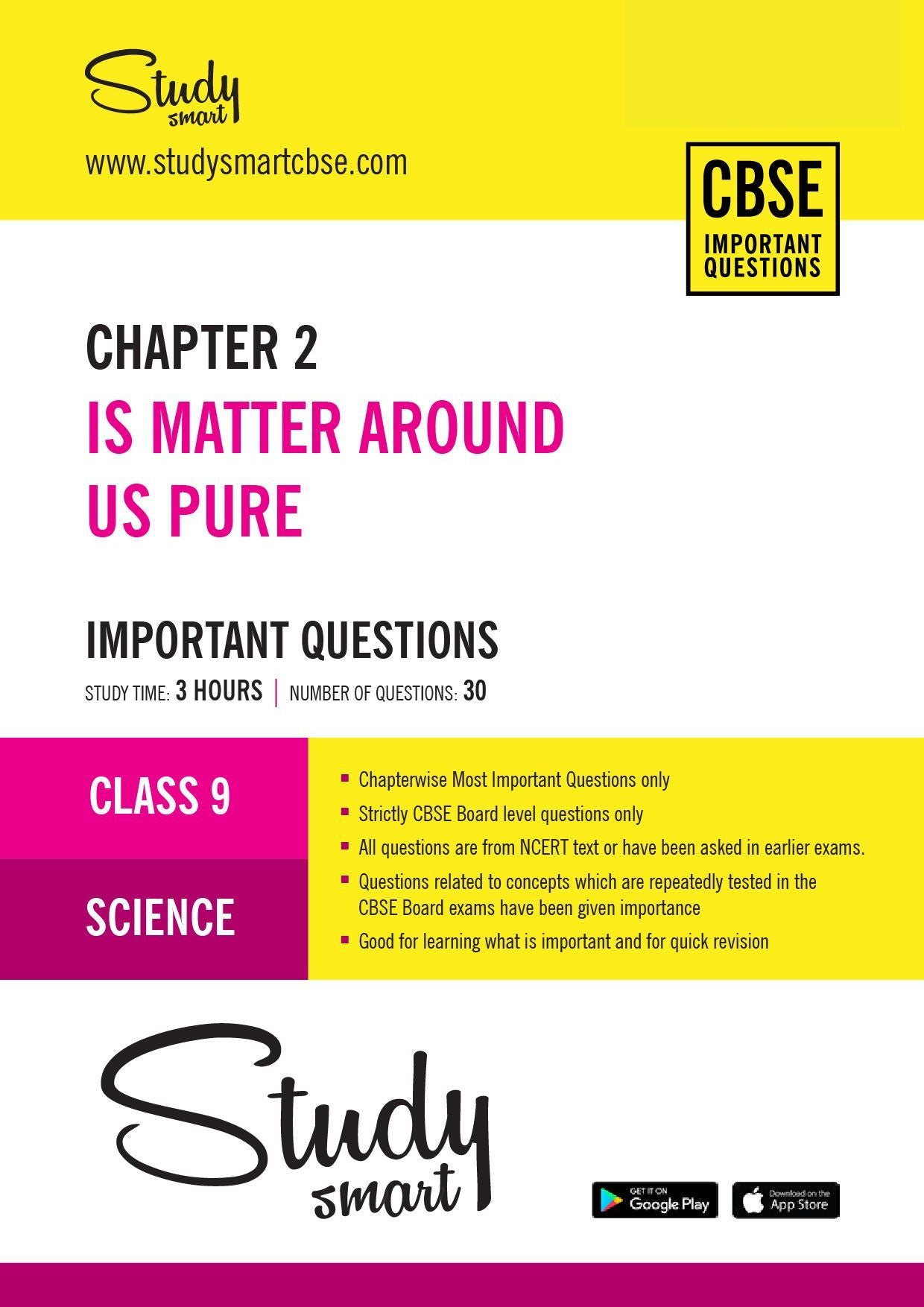 Get exam-ready with this expertly designed set of important questions from Chapter 2: Is Matter Around Us Pure, curated as per the latest NCERT and CBSE