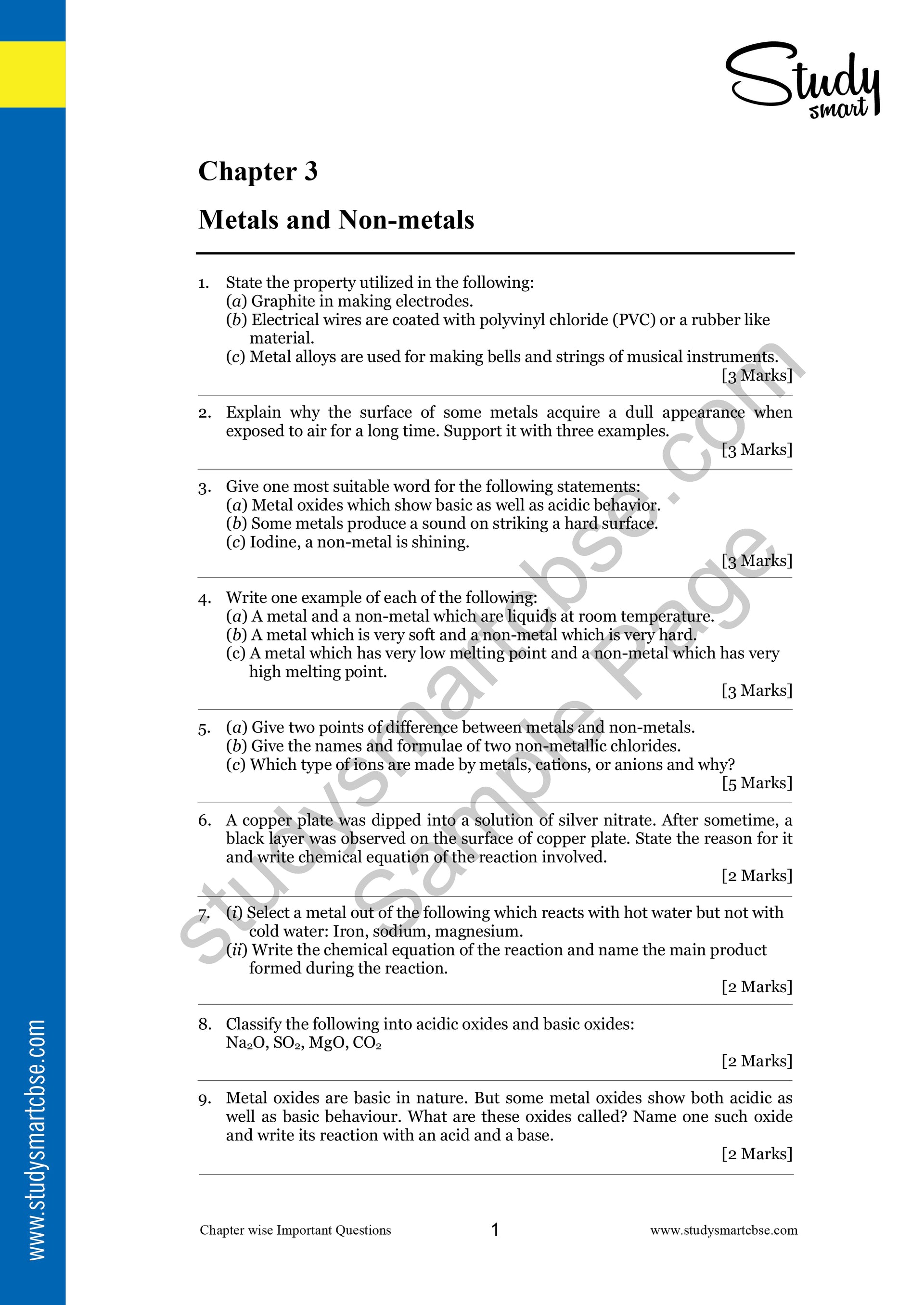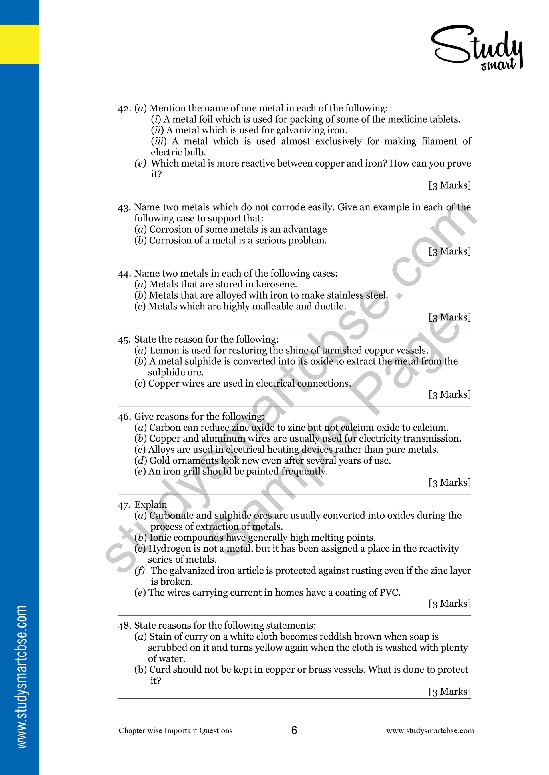 ✅ Covers important reactions: air, water, acids, and displacement