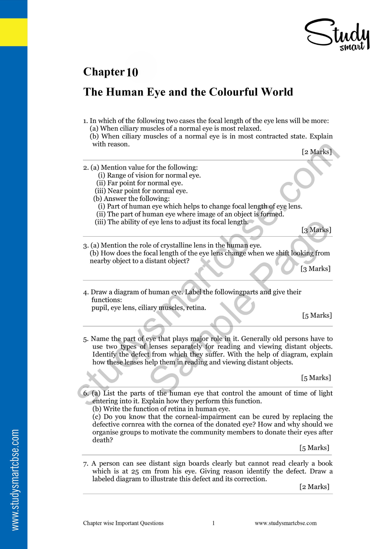 Prepare effectively for your CBSE board exams with this handpicked set of Important Questions for Chapter 10 – The Human Eye and The Colourful World from Class 10 Science. This printable PDF is curated as per the latest CBSE 2025–26 syllabus, featuring both theory-based and diagram-based questions along with accurate, board-style answers.