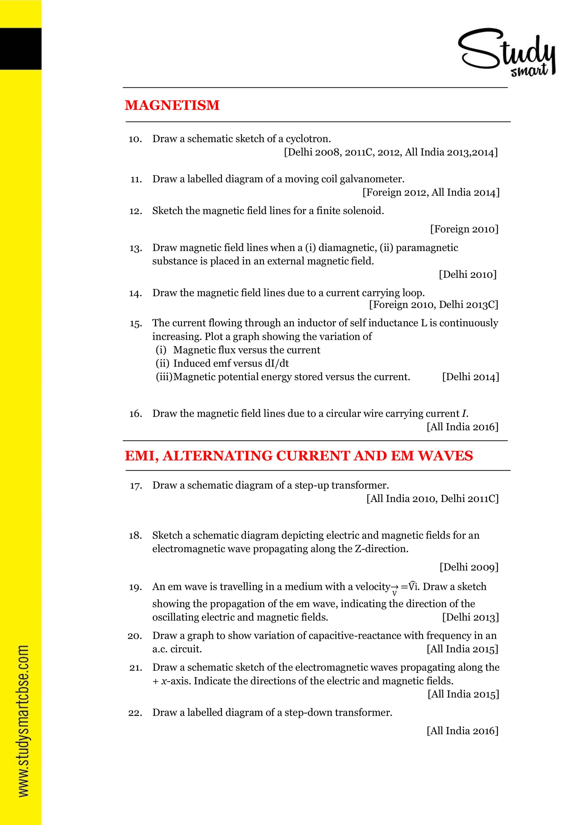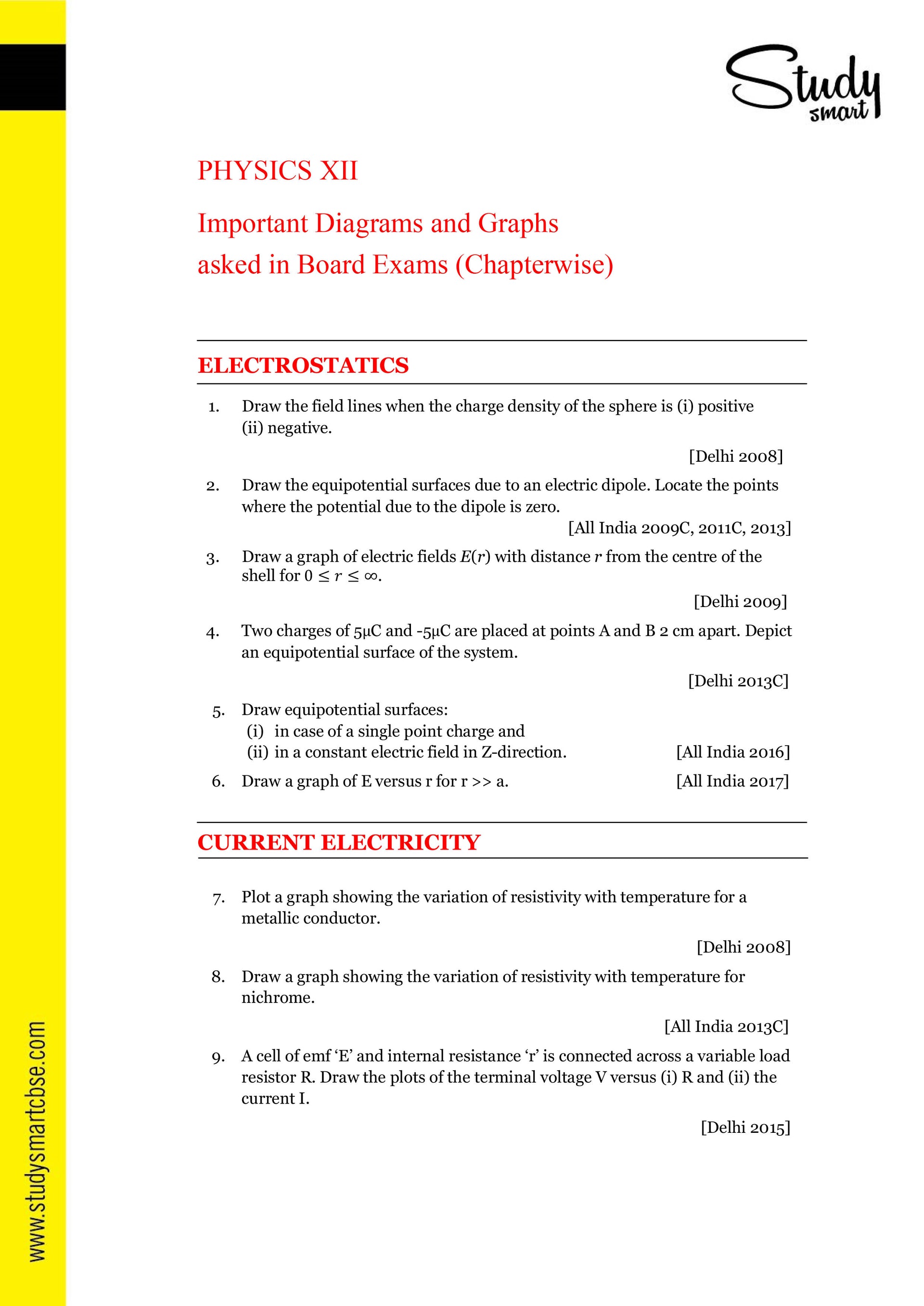 Enhance your preparation for the CBSE Class 12 Physics board examination with this meticulously curated collection of 76 essential diagrams and graphs, compiled in a chapter-wise format.