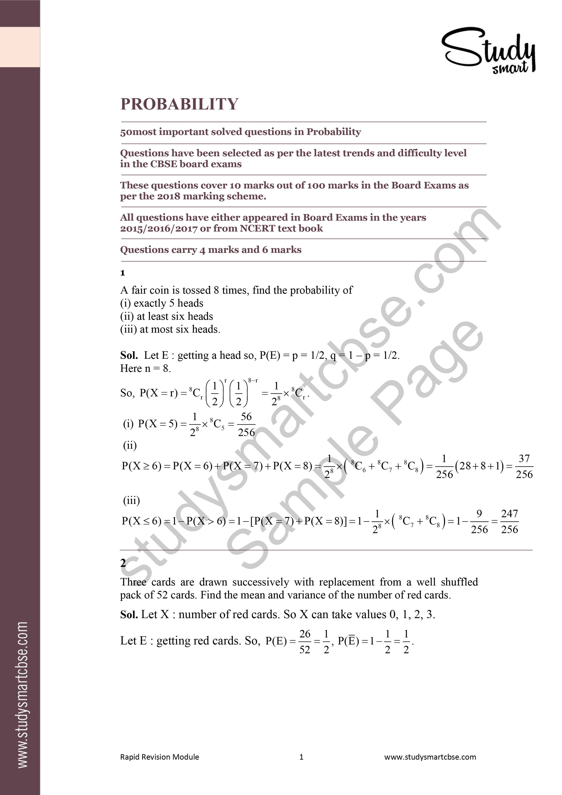 Probability, designed as per the CBSE Class 12 Maths syllabus for 2025–26. This resource includes a wide range of solved problems with detailed explanations, covering all important types and formats expected in board exams. Available in PDF format for convenient learning and revision.